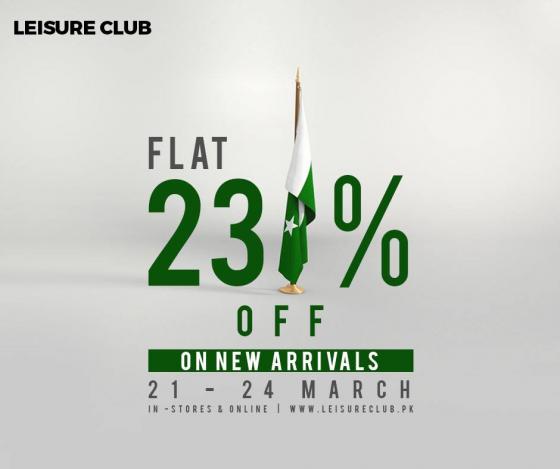 Leisure Club Pakistan Day Sale! FLAT 23% OFF on new arrivals from 21st March to 24th March 2019.