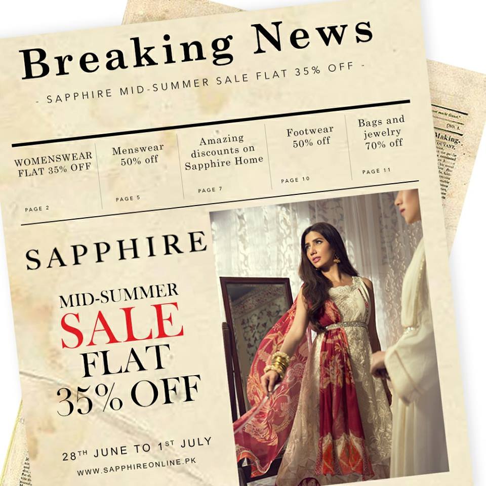 Get ready for Sapphire’s Mid- Summer sale! Enjoy FLAT 35% off on our womenswear starting 28th of June till the 1st of July.